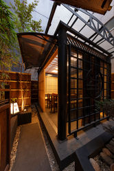An existing open terrace shed in the backyard was converted into a private VIP room in the style of Japanese Tea Room.